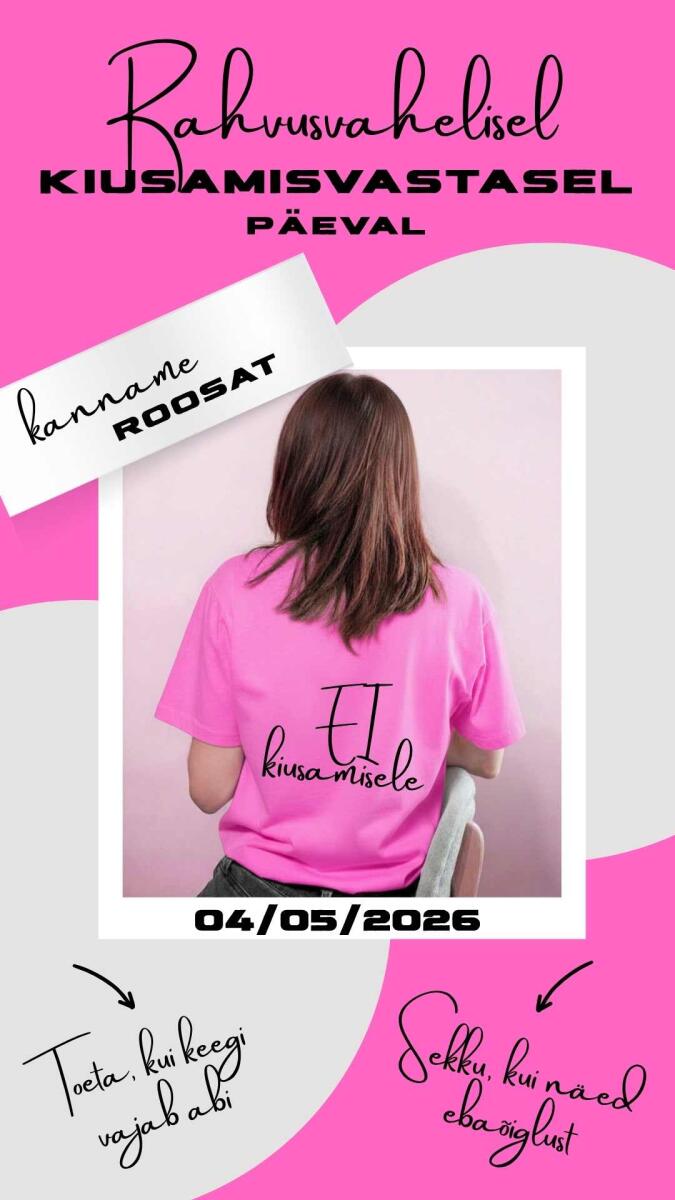 Esmaspäeval, 4. mail, rahvusvahelisel kiusamisvastasel päeval kanname ROOSAT, et näidata oma ühtset hoiakut kiusamise vastu.