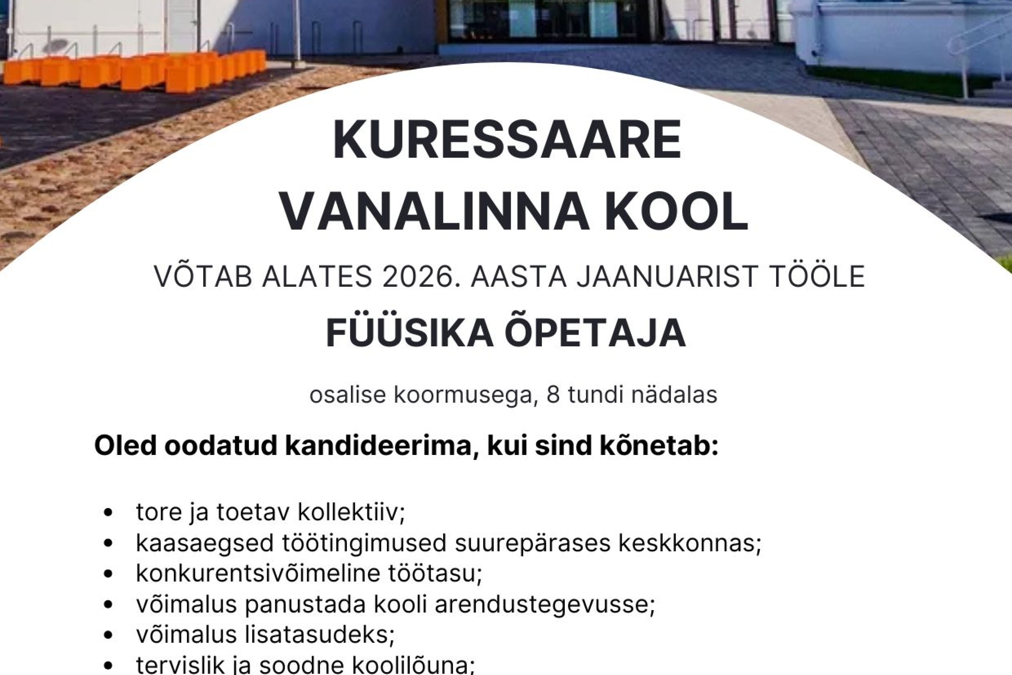 Ootame enda kollektiiviga liituma füüsikaõpetajat alates 2026 aasta jaanuarist