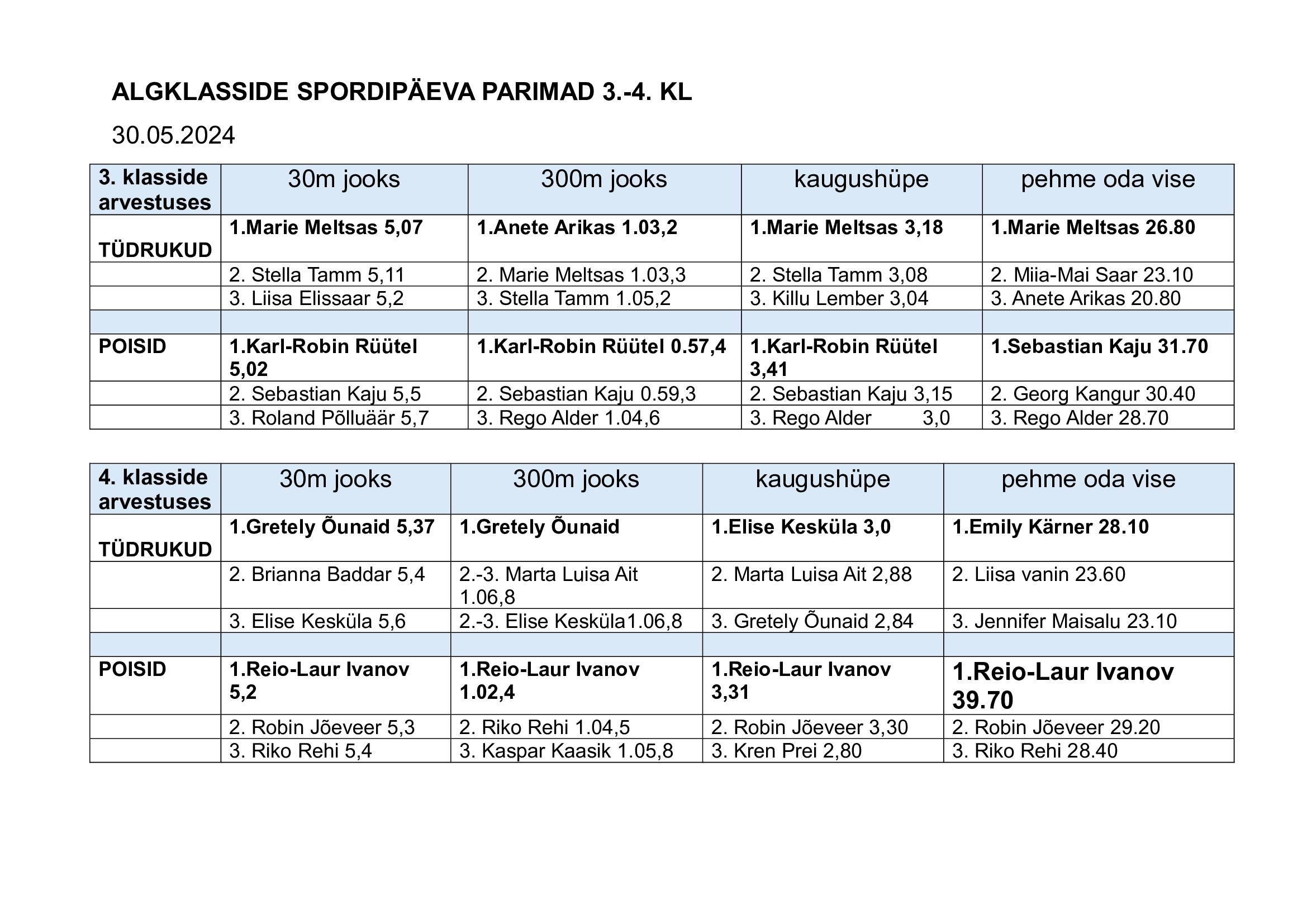 Neljapäeval, 30. mail toimus Kuressaare spordihoone kergejõustikuhallis meie kooli 1.-2. ja 3.-4. klasside kevadine spordipäev, kus osalejad panid end proovile: