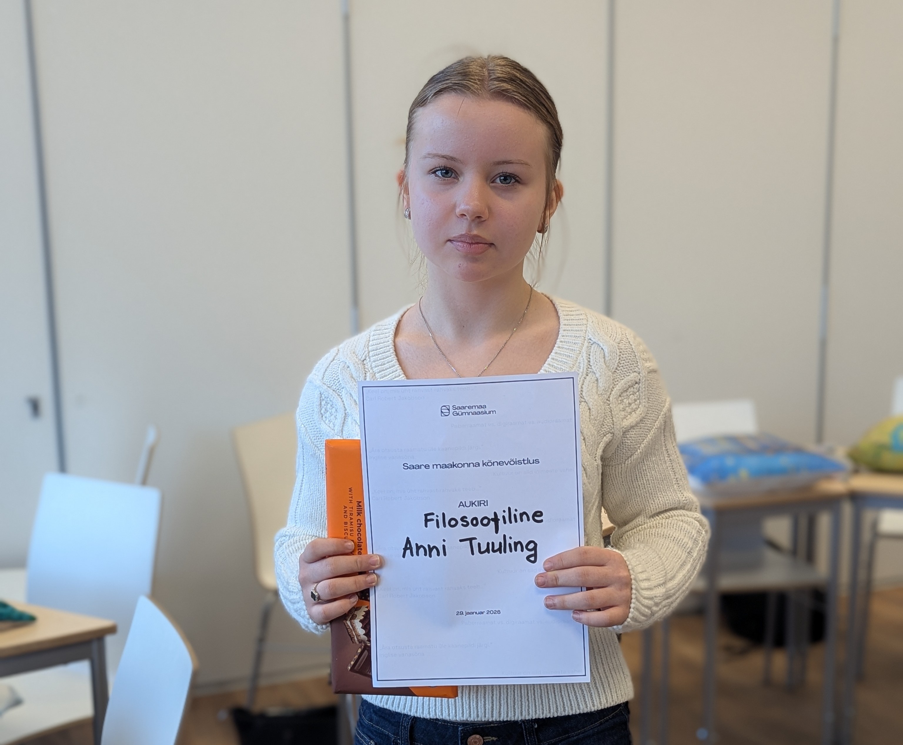 Meie kooli esindas edukalt Anni Tuuling, kes teenis tubli esituse eest filosoofilisema kõne aukirja. Annit juhendas õpetaja Ene Grass.